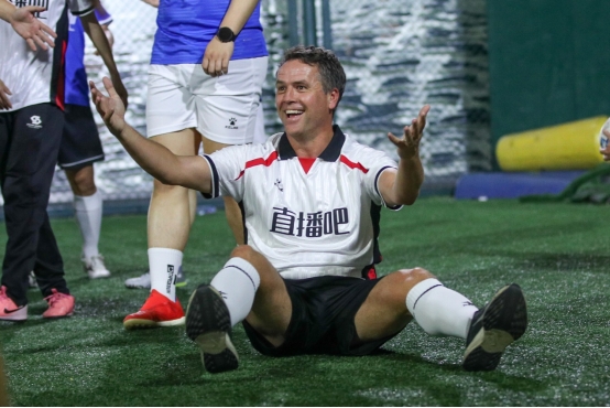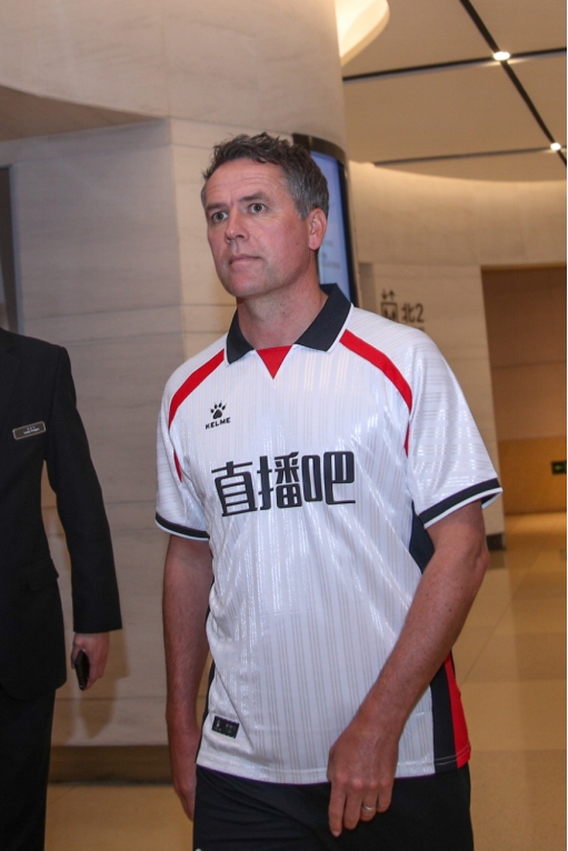 4月24日,欧洲金球奖得主迈克尔·欧文亮相球友会,并身穿球衣登场,与朋友圈的媒体记者、足球达人以及足球少年们同场切磋。
